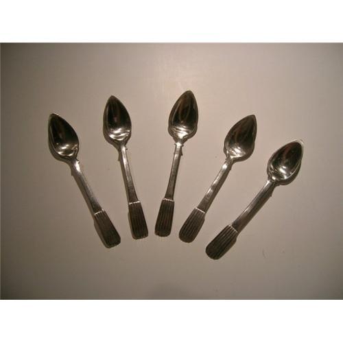 A GREAT SET OF FIVE STERLING SILVER TEA SPOONS.