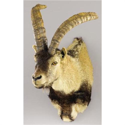 <B>GREDOS IBEX SHOULDER MOUNT</B></I><BR> <I>Capra pyrenaica victoriae</B></I><BR>From the Gredos Mountain range of Spain this animal makes a wonderful Big Game trophy. The horns have a very different shape to those of any other species of ibex. These animals can be very difficult to hunt as the older males stay in caves or behind large rocks during midday, and only emerge to feed at dark. This mount is a trophy-size mature bull and has excellent-quality taxidermy, standing 27¼ inches from the wall and 30½ inches high.<BR><BR><b>Shipping:</b> Requires 3rd Party Shipping (<a target="_blank" href="http://www.heritageauctions.com/common/shipping.php">view shipping information</a>)