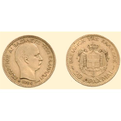 GREECE COINS 20 Drachma 1884, Paris. Head right / Value and d