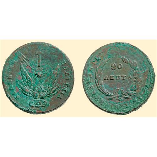 20 Lepta 1831, Aegina. Divo 2.