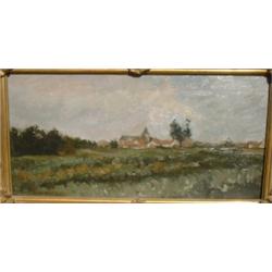 GREEF, Amédée De, "Cloudy Day". Huile sur toile, signée. École belge, 19e S. Oil on canvas, signed. 19th C. Belgian School. 12" x 24" - 30.4cm x 61cm. $600/800