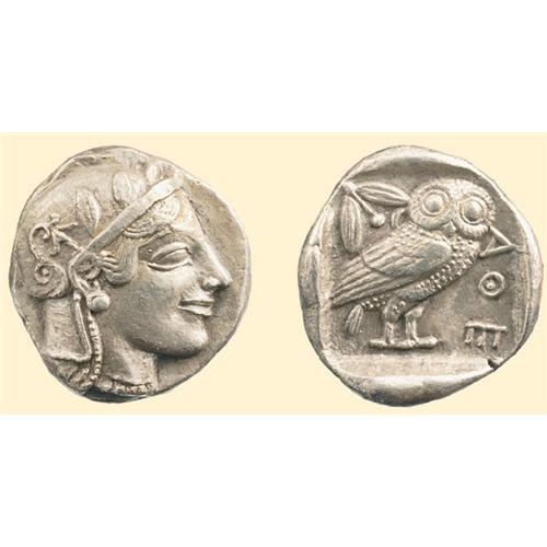 AR Tetradrachm (16.62 g). Ca. 460-455 BC. Helmeted head of Athena right / AQE, owl standing right, head facing, olive sprig behind. Seltman 440; Svoronos pl. 9, 7 ff; Dewing 1589. A superb `transitional owl` of the best style.