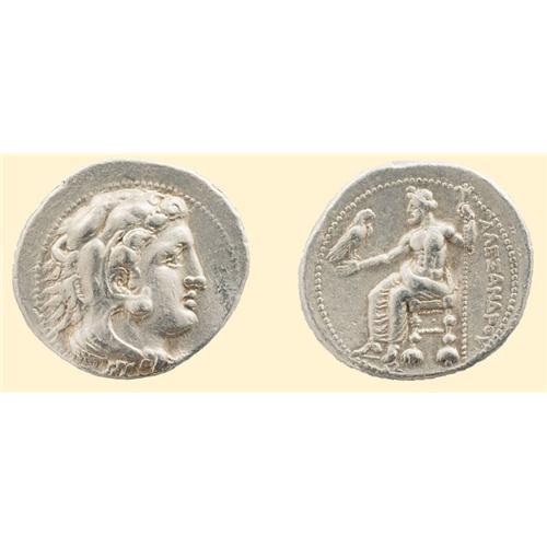 AR Tetradrachm (17.17 g). Tarsus. 333-327 BC. Head of young Herakles right, wearing lion skin / <SPAN STYLE=`FONT-SIZE:10.0PT;FONT-FAMILY:SYMBOL;COLOR:#333333`>ALEXANDROU</SPAN>, Zeus enthroned left, holding eagle and scepter, small globule above throne strut. Price 2990.