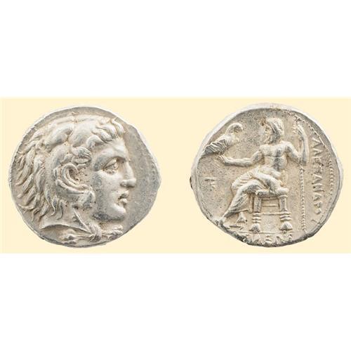 AR Tetradrachm (17.04 g). Citium. 325-320 BC. Head of young Herakles right, wearing lion skin / <SPAN STYLE=`FONT-SIZE:10.0PT;FONT-FAMILY:SYMBOL;COLOR:#333333`>ALEXANDROU [BASI]LEWS</SPAN>, Zeus enthroned left, holding eagle and scepter, TK monogram to left. Price 3110.