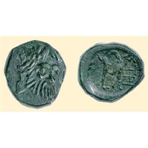 AE 12 (4.85 g). Ca. 350-250 BC. Horned and bearded head of river god Istros / <SPAN STYLE=`FONT-SIZE:10.0PT;FONT-FAMILY:SYMBOL;COLOR:#333333`>ISTRI</SPAN>, eagle left, holding dolphin in talons. AMNG I/1, 468; SNG BM 260 var.; SNG Stancomb 179.