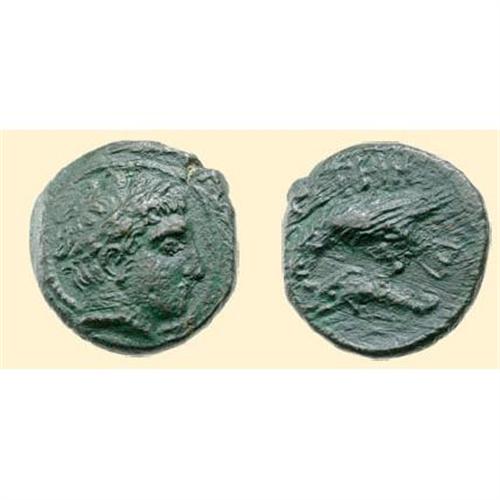 AE 16 (3.89 g). Ca. 350-250 BC. Laureate head of Apollo right / <SPAN STYLE=`FONT-SIZE:10.0PT;FONT-FAMILY:SYMBOL;COLOR:#333333`>ISTRIH</SPAN>, eagle left, holding dolphin in talons; monogram A below. AMNG I/1, 459-460 var.; SNG BM 259 var.; SNG Stancomb 169-174.