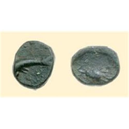 AE 8 (0.52 g). Ca. 350-250 BC. Dolphin to left / <SPAN STYLE=`FONT-SIZE:10.0PT;FONT-FAMILY:SYMBOL;COLOR:#333333`>I]S[TR</SPAN>, blade of wheat. AMNG I/1, 471; SNG BM -.