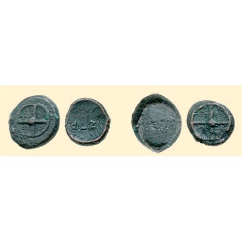 AE 9 (1.61 g). 4th century BC. Wheel or solar disk with four rays / <SPAN STYLE=`FONT-SIZE:10.0PT;FONT-FAMILY:SYMBOL;COLOR:#333333`>ISTRI</SPAN>. AMNG 1/1, 535. SNG BM - ; SNG Stancomb -.