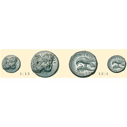 AR Stater (5.91 g). Ca. 400-350 BC. Two joined young male heads, the one on the right inverted / <SPAN STYLE=`FONT-SIZE:10.0PT;FONT-FAMILY:SYMBOL;COLOR:#333333`>ISTRIH</SPAN> eagle left, holding dolphin in talons; monogram <SPAN STYLE=`FONT-SIZE:10.0PT;FONT-FAMILY:SYMBOL;COLOR:#333333`>AP</SPAN> below. AMNG I/1, 417; SNG BM 248; SNG Stancomb 147.