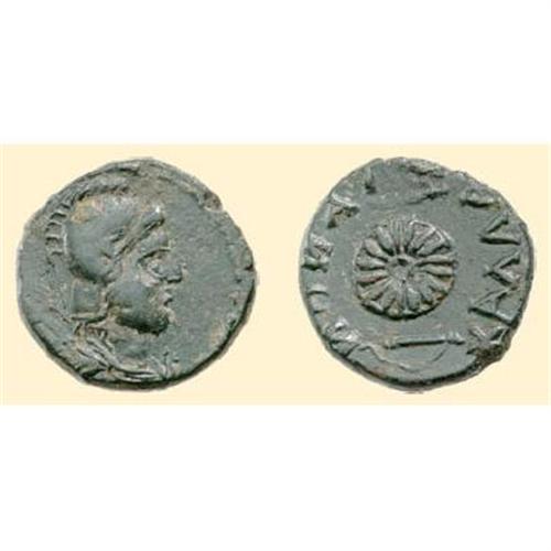 AE 15 (2.57 g). End of the 1st-2nd century AD. Helmeted bust of Athena right / <SPAN STYLE=`FONT-SIZE:10.0PT;FONT-FAMILY:SYMBOL;COLOR:#333333`>KALLATIANWN</SPAN>, rose between club and thyrsos. AMNG I/1 - ; BMC -.
