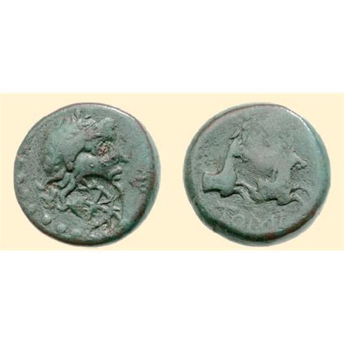 AE 20 (8.73 g). End of the 3rd-beginning of the 2nd century BC. Laureate bearded head right / TOMI, facing horse protomes, two stars above. AMNG I/2, 2461 ff.; SNG BM - ; SNG Stancomb 280. With large countermark depicting a water wheel.
