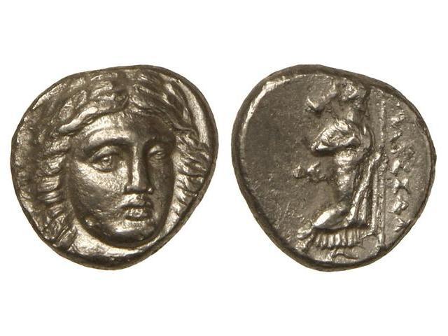 GREEK COINS - Dracma. 377-353 a.C. MASSAULOS. Anv.: Cabeza laureada de Apolo de frente, mirando a derecha. Rev.: Zeus Labraundos en pie a derecha, sosteniendo labrys y lanza. 3,45 grs. AR. (Pequeño golpecito en mejilla. Leves oxidaciones en reverso