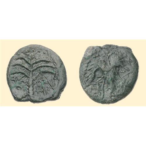 Bar Kochba Revolt, 132-135 AD. AE 25 mm (10.11 g). Palm tree / vine leaf, illegible date. SNG ANS 526 ff.
