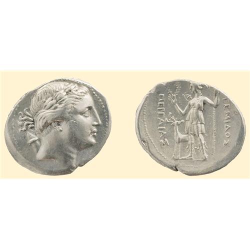 AR Tetradrachm (16.45 g). Mid 3rd century BC. Laureate head of Artemis right, bow and quiver at shoulder / <SPAN STYLE=`FONT-SIZE:10.0PT;FONT-FAMILY:SYMBOL;COLOR:#333333`>APTEMIDOS / PERGAIAS</SPAN>, Artemis standing left, holding scepter and crowning the city name, stag at her side. Colin Emission 2, 1.1 (p. 36, dies 2.1/2.2 -one specimen cited from these dies) = SNG Cop. 299. SNG von Aulock-.