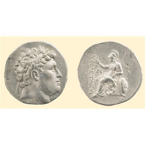 AR Tetradrachm (16.72 g). <SPAN STYLE=`FONT-SIZE:10.0PT;FONT-FAMILY:SYMBOL;COLOR:#333333`>FILETAIROU</SPAN>, laureate head of Philetairos left / Athena seated left on throne, holding scepter, leaning against shield, and crowning royal name; bow behind, monogram before. Cf. Westermark V.CXIX-R.1b (same obverse die, different reverse with a similar monogram as in Westermark). SNG France 5, 1626 var. (also with similar monogram).