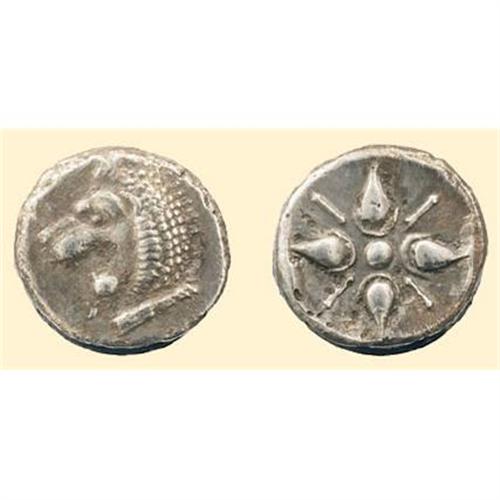 AR Drachm (3.96 g). EKA, lion`s head left / stellar motif. BMC 14.187, 37-41.