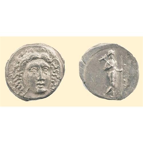 AR Didrachm (6.84 g). Laureate head of Apollo, three-quarters facing / <SPAN STYLE=`FONT-SIZE:10.0PT;FONT-FAMILY:SYMBOL;COLOR:#333333`>IDRIEWS</SPAN>, Zeus Labraundos standing right, holding double axe. BMC 18.183.2-3.
