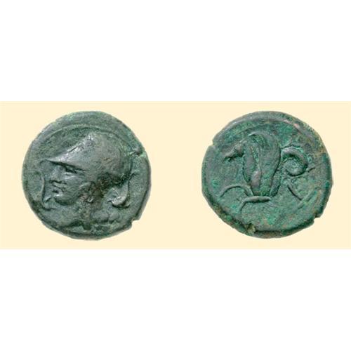 AE Litra (6.36 g). Ca. 409-395 BC. <SPAN STYLE=`FONT-SIZE:10.0PT;FONT-FAMILY:SYMBOL;COLOR:#333333`>SURA</SPAN>, helmeted head of Athena right / winged hippocamp left. CNS II, 41; SNG ANS 434.