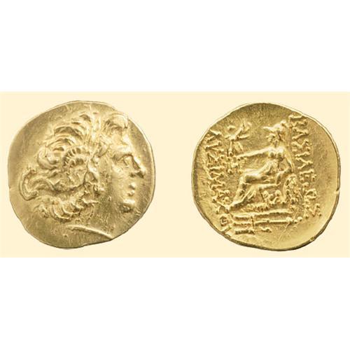 AV Stater (8.27 g). Early 1st century BC. Kallatis. Diademed head of deified Alexander the Great right, with the horns of Ammon / BASILEWS / LUSIMACOU, Athena enthroned left, holding Nike as she crowns Lysimachos` name, P monogram left, KAL on throne, trident in exergue. Callataÿ D4-R2 (same obverse die).
