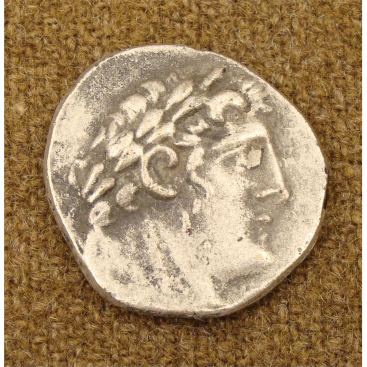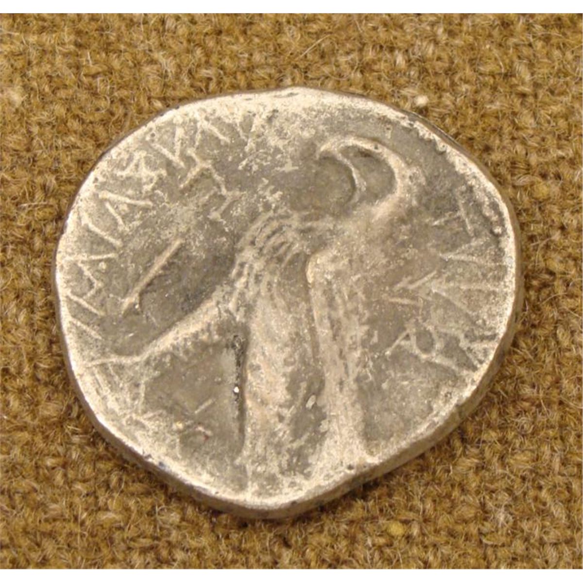 REPLICA OF GREEK TETRADRACHM "SHEKEL OF TYRE", ORIGINALLY MINTED BC. * HAS LAUREATE BUST OF MELQARTH ON OBVERSE--EAGLE ON SHIP"S PROW W/PALM & CLUB ON REVERSE W/DATE