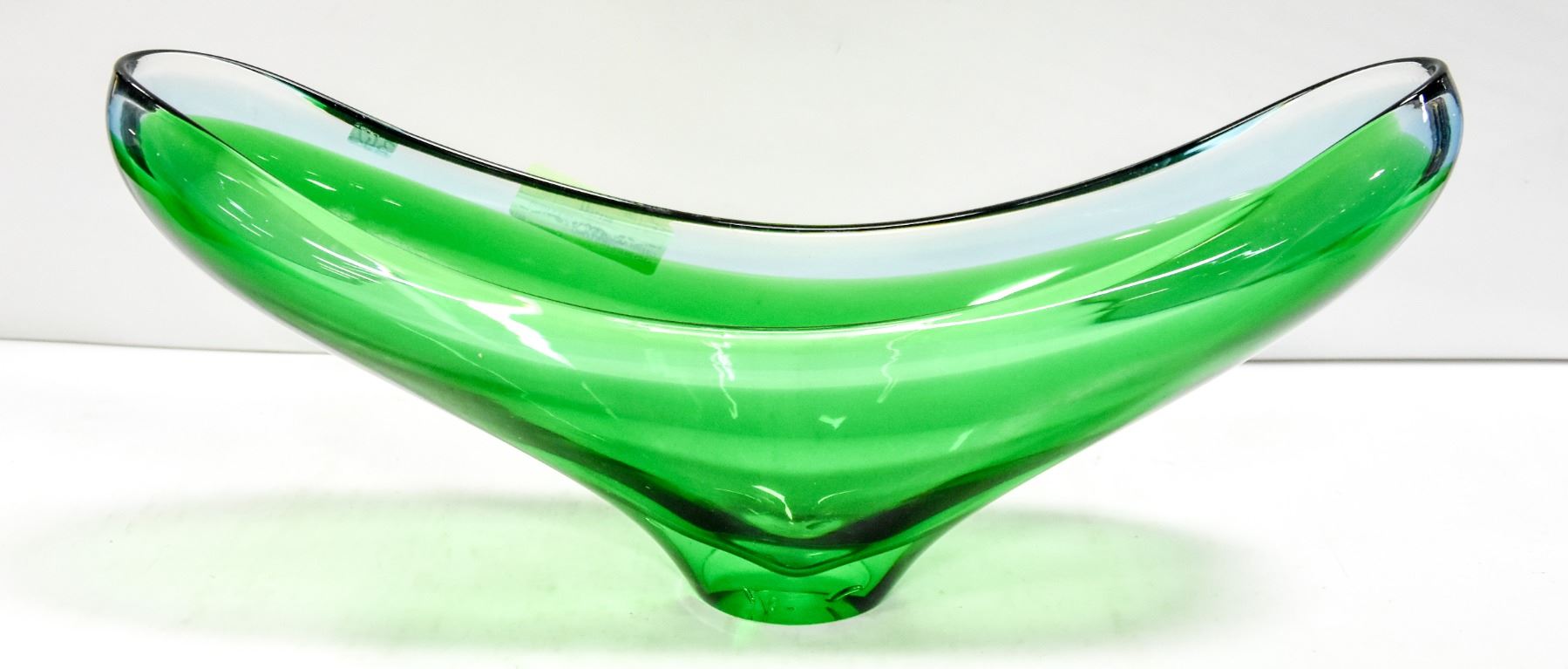 GREEN ART GLASS VASE 8.5 HIGH AND 20 INCHES LONG