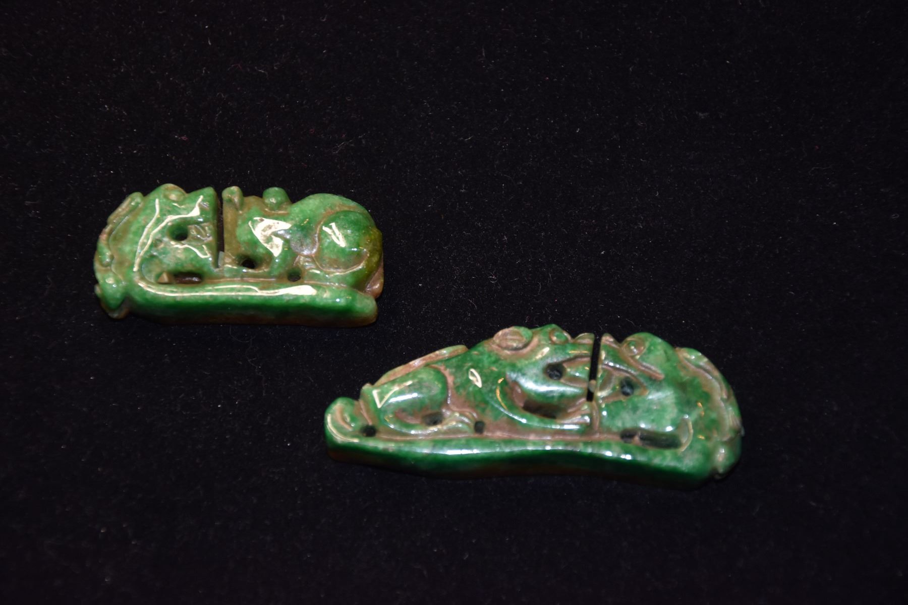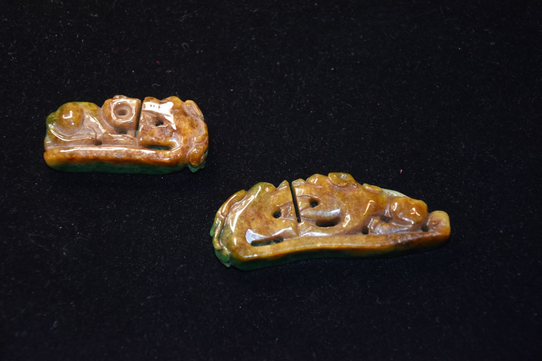 GREEN/BROWN JADEITE DRAGONS (2 PCS)