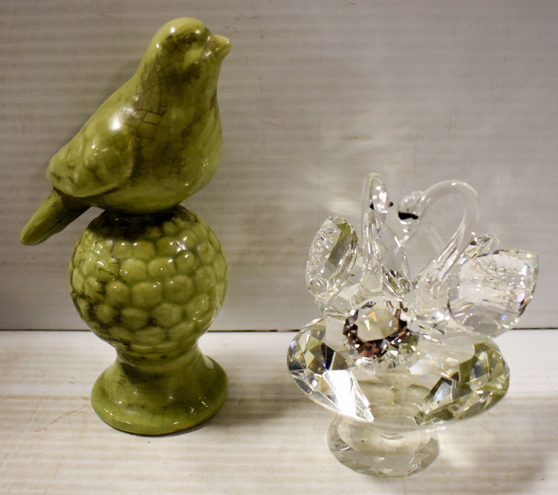 GREEN CERAMIC BIRD & CRYSTAL SWANS