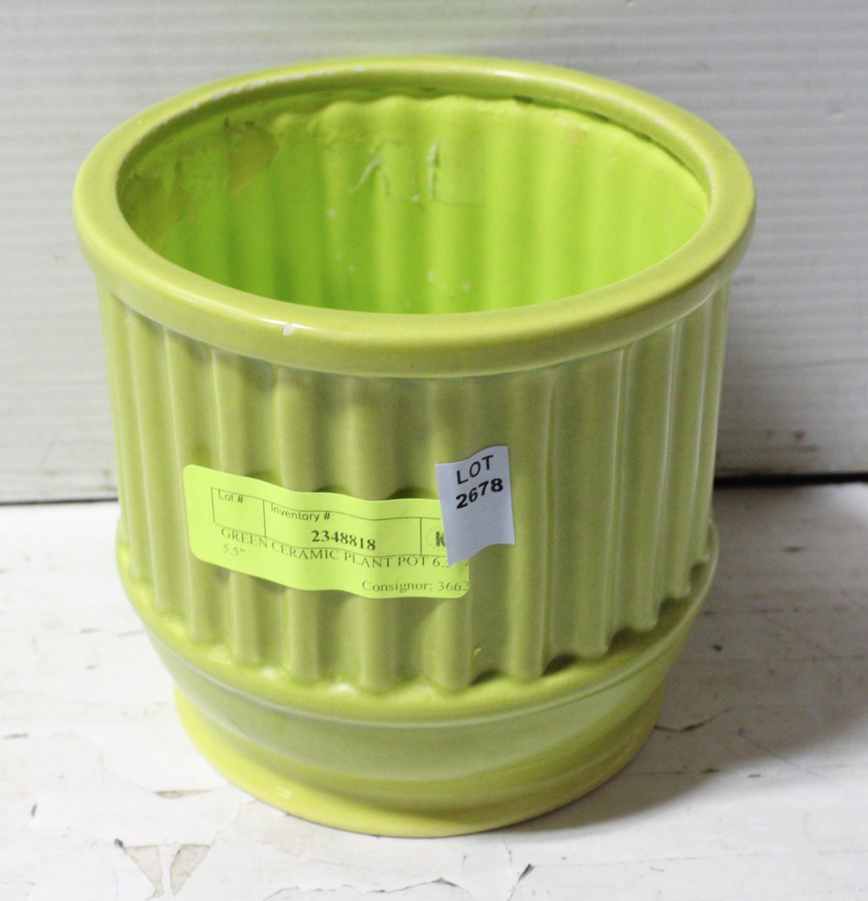 GREEN CERAMIC PLANT POT 6.5" X 5.5"