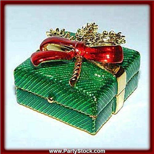 GREEN CHRISTMAS HOLLY! GOLD & CRYSTAL JEWELRY BOX<p>Height: 1 Inch