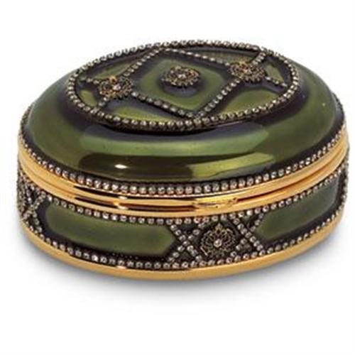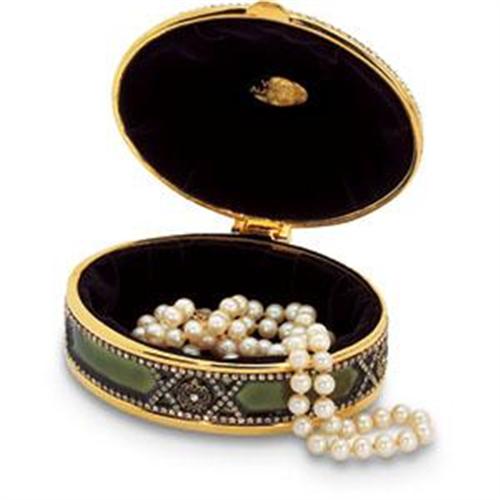 This elegant JEWELRY BOX is by VIVIAN ALEXANDER and it is often referred to as a 'GREEN CORONATION JEWELRY BOX'. It opens so you can put your favorite treasure inside.