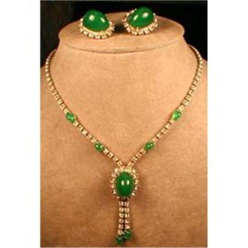<tr><td>Title:GREEN Cabochon Rhinestone SET Neckalce Earings</td></tr>