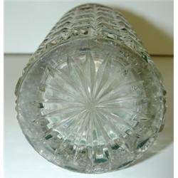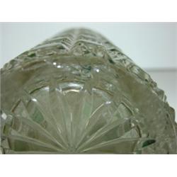 GREEN DOT DECORATED PATTERN GLASS SUGAR SHAKER. Has hallmark on top rim. Lid is silver plate. Has roughness around bottom. 5.75" H