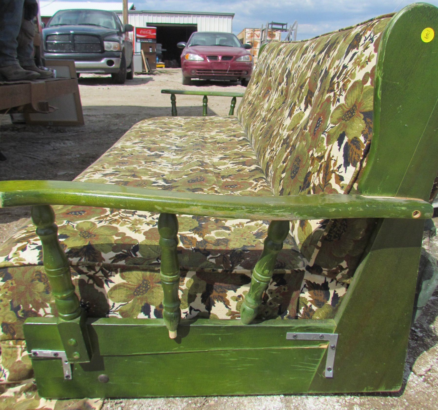 GREEN FLORAL SOFA (VINTAGE) *FOLDS DOWN INTO BED*