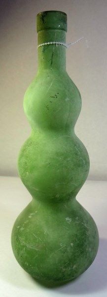 GREEN GLASS VASE WITH FROSTED OUTSIDE