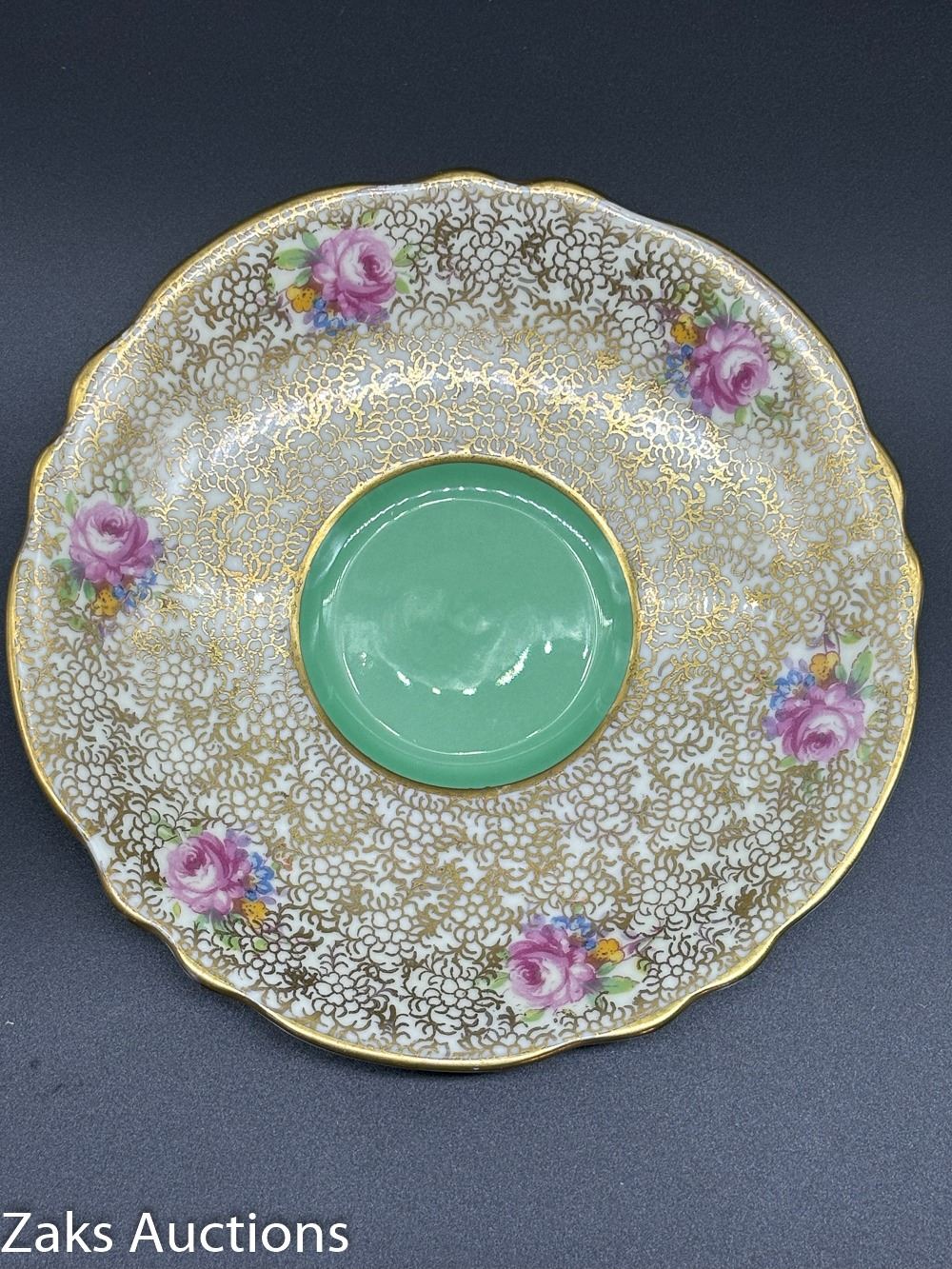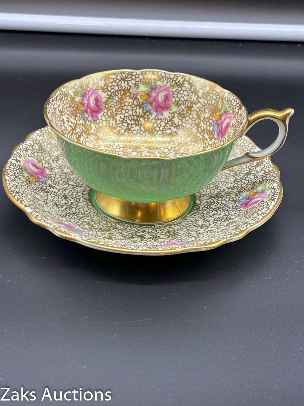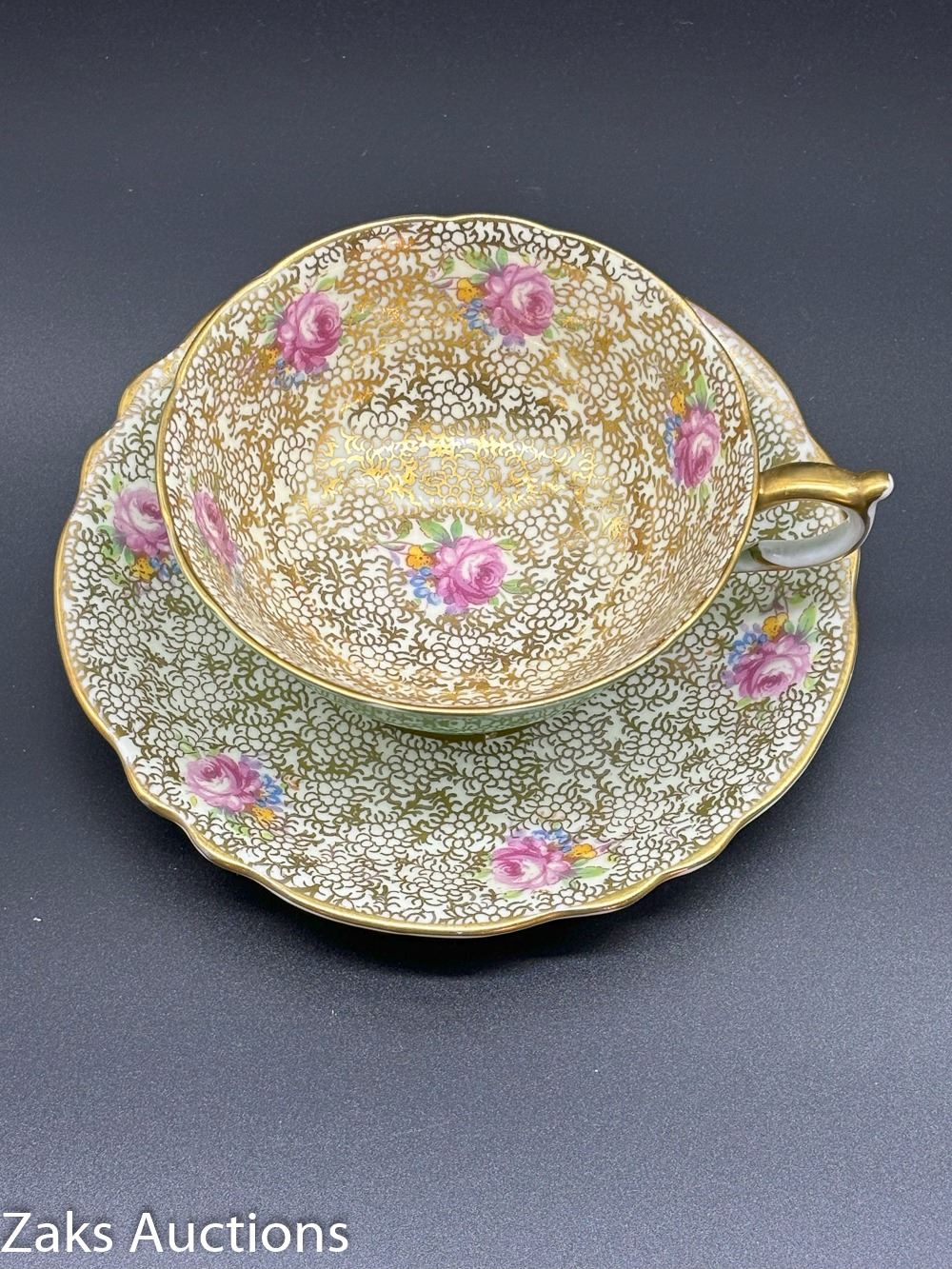 DETAILED GOLD ACCENTED SIX CABBAGE ROSE PARAGON TEA CUP