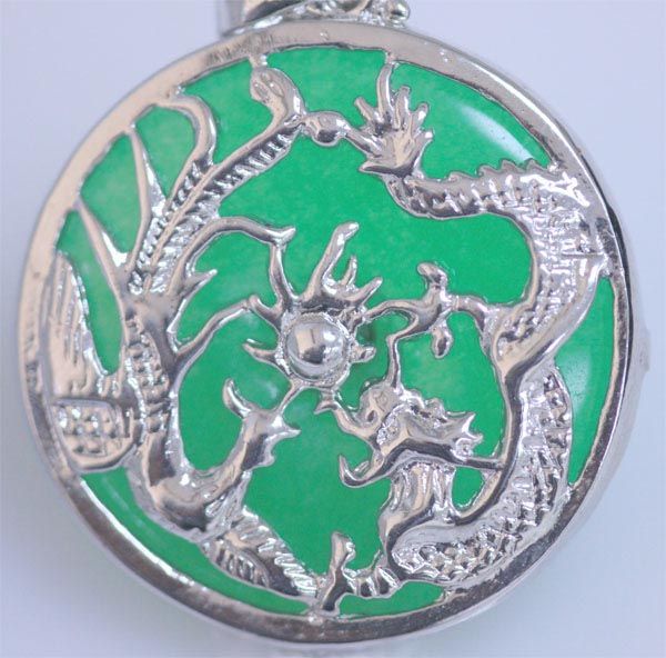 GREEN JADE BRASS NECKLACE **|**|** GREEN JADE BRASS NECKLACE WITH SILVER CHAIN ; MSRP: $200