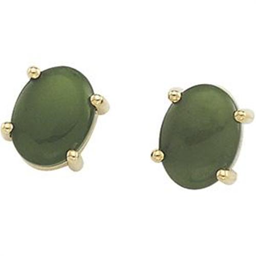 14k Yellow Gold Earrings each featuring a beautiful Oval GREEN JADE. This pair of Green Jade are well matched in color and size. The Jade Total Weight = THREE CARATS! (Each Jade measures 8mm x 6mm) The Earrings have post style backs for pierced ears.