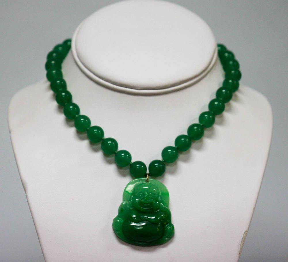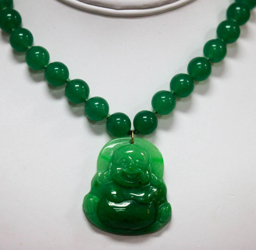 GREEN JADE GOOD LUCK CHARM BUDDHA NECKLACE WITH 14K YEL **|**|** GREEN JADE GOOD LUCK CHARM BUDDHA NECKLACE WITH 14K YELLOW GOLD LOCK