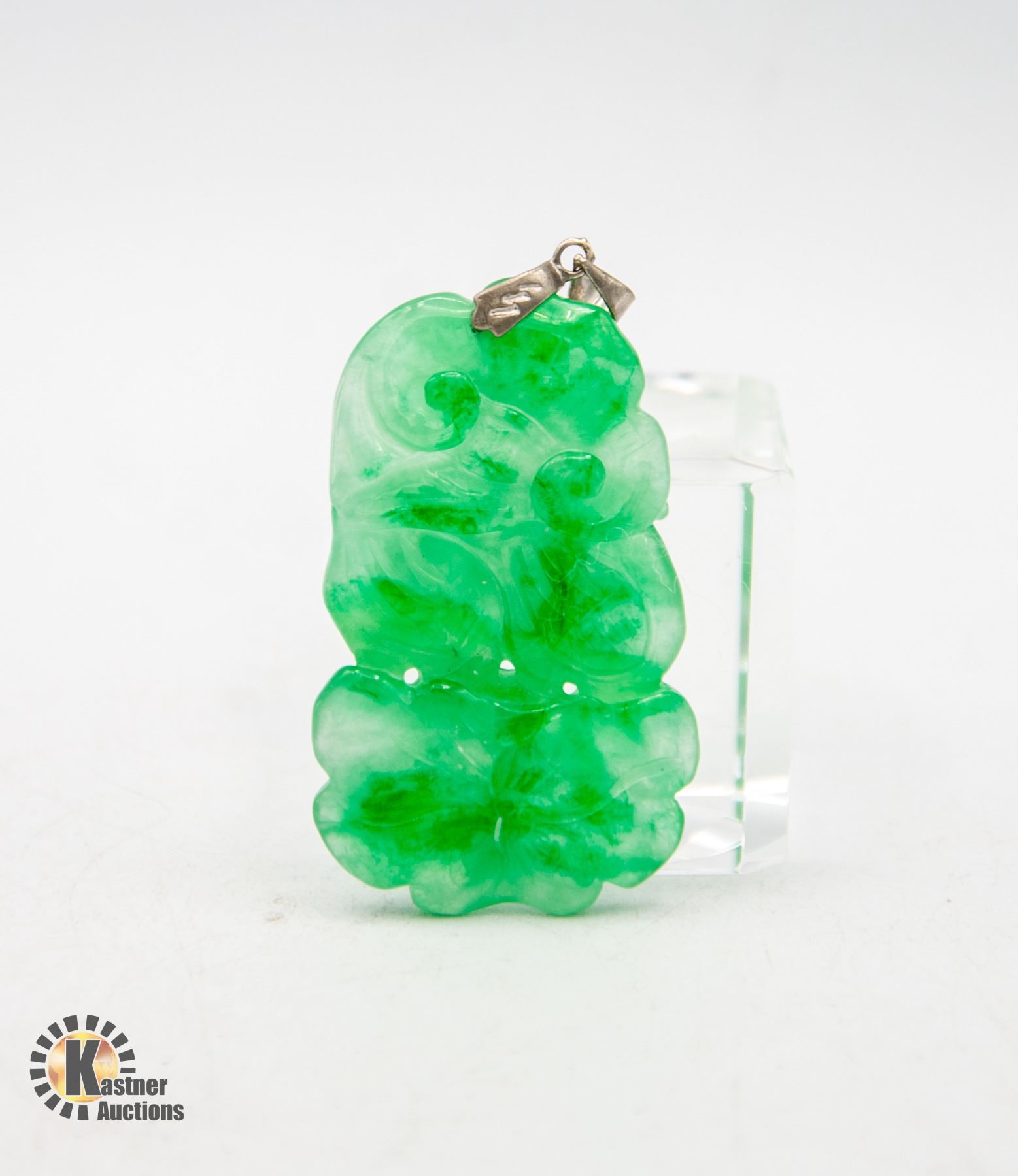 GREEN JADE PENDANT WHITE GOLD PLATED PENDANT