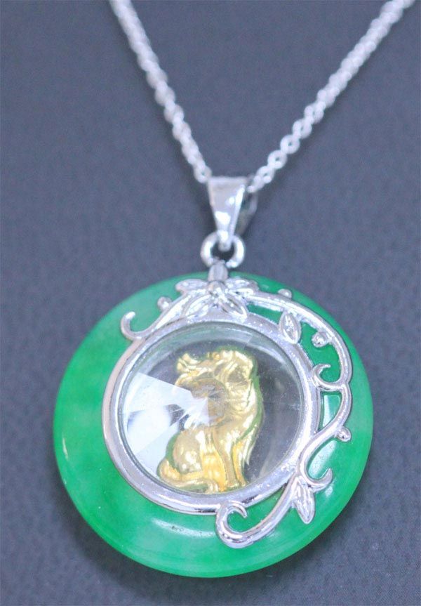 GREEN JADE PENDANT YEAR OF THE DOG NECKLACE **|**|** GREEN JADE PENDANT YEAR OF THE DOG NECKLACE WITH SILVER CHAIN ; MSRP: $200