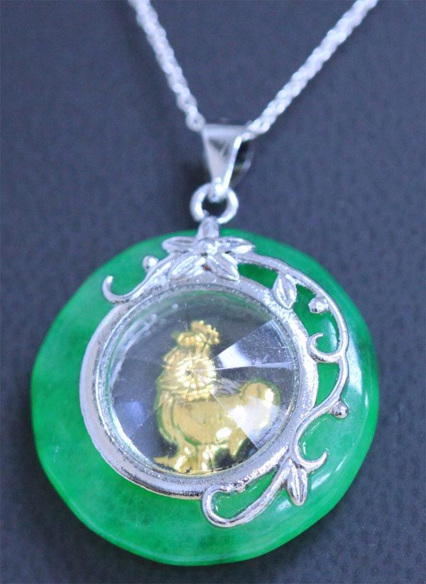 GREEN JADE PENDANT YEAR OF THE ROOSTER NECKLACE **|**|** GREEN JADE PENDANT YEAR OF THE ROOSTER NECKLACE WITH SILVER CHAIN ; MSRP: $200