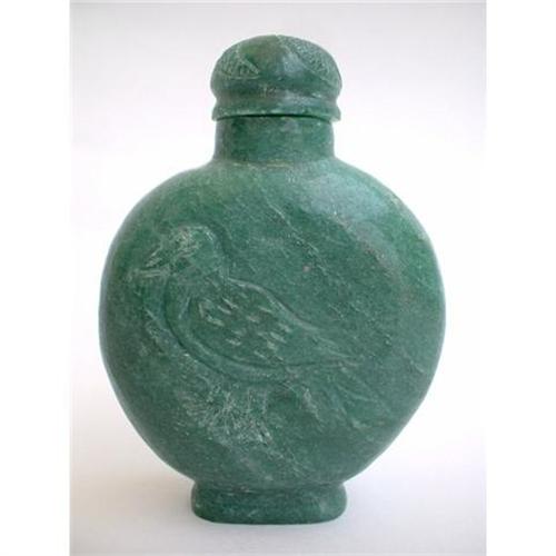 GREEN JADE SNUFF BOTTLE , 2 SIDES BIRD . #2190282