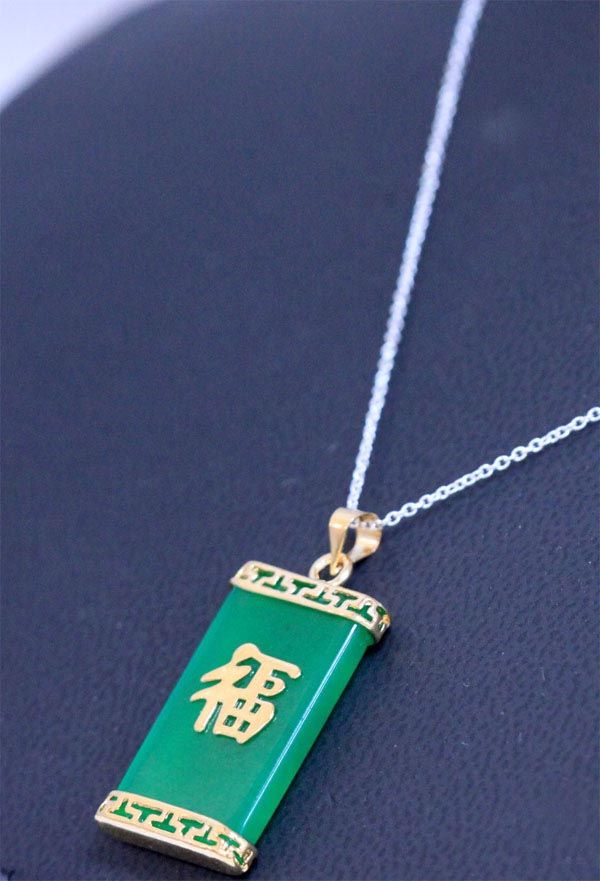 GREEN JADE YELLOW BRASS PENDANT WITH SILVER CHAIN **|**|** GREEN JADE YELLOW BRASS PENDANT WITH SILVER CHAIN ; MSRP: $200