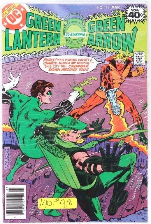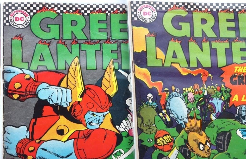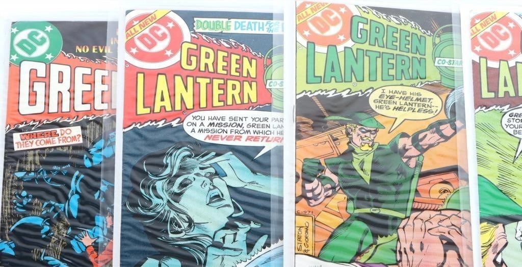 Green Lantern collectible comic books to include #46, #50, #65, #111 (First mention of Starheart, the sentient embodiment of the Green Flame of the lantern), #112 (Origin of Green Lantern retold. Origin of Starheart), #114, #115, #116 (Guy Gardner stands in for Hal Jordan as Earth's Green Lantern), #117, #118 and #141 (1st team appearance of the Omega Men: Primus, Kalista, Harpis, Demonia, Broot, Nimbus).