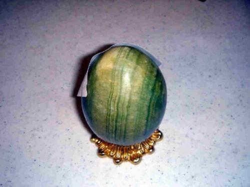 GREEN MARBLE EGG ON STAND