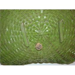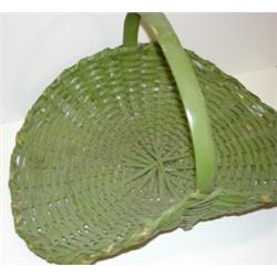 PRIMITIVE GREEN PAINTED FLOWER BASKET. Overpainted with green paint. 11.5" H, 21" L