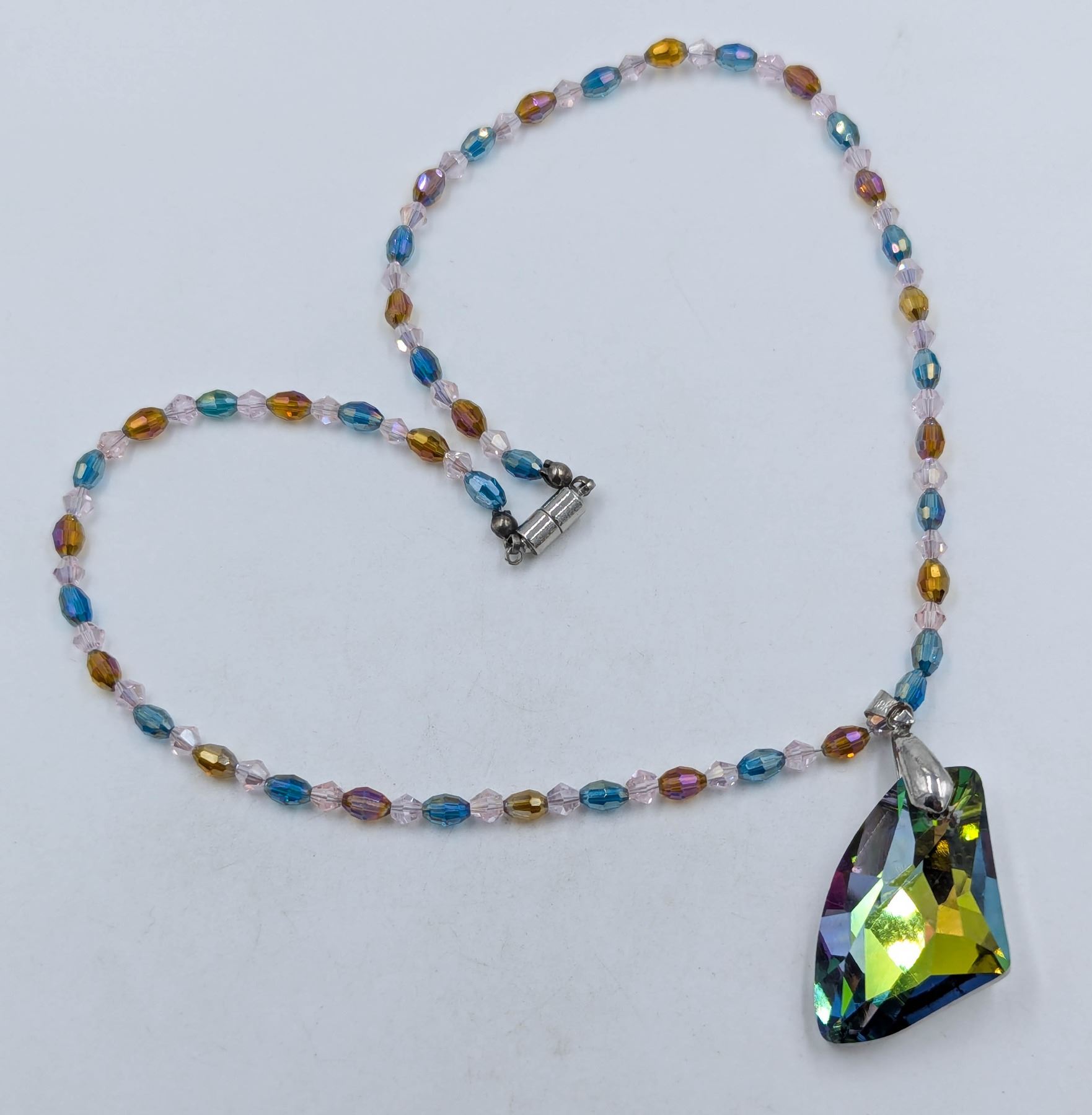GREEN PINK AMBER CRYSTAL NECKLACE 18" MAGENT CLAS