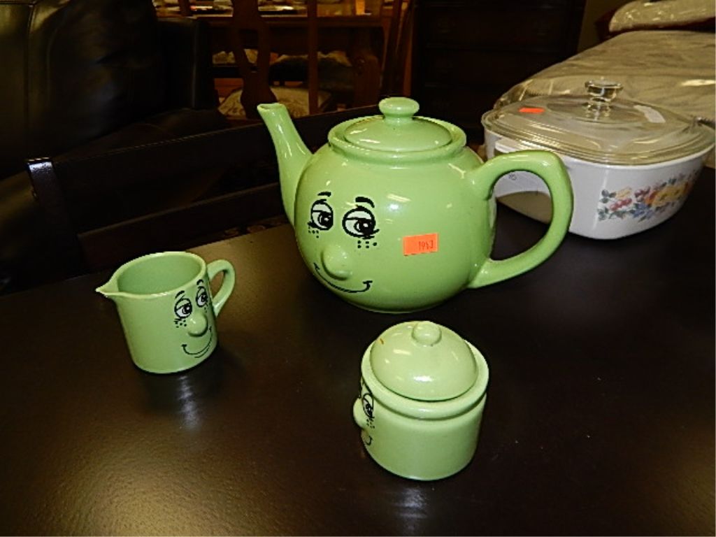 GREEN TEA POT & CREAM AND SUGAR
