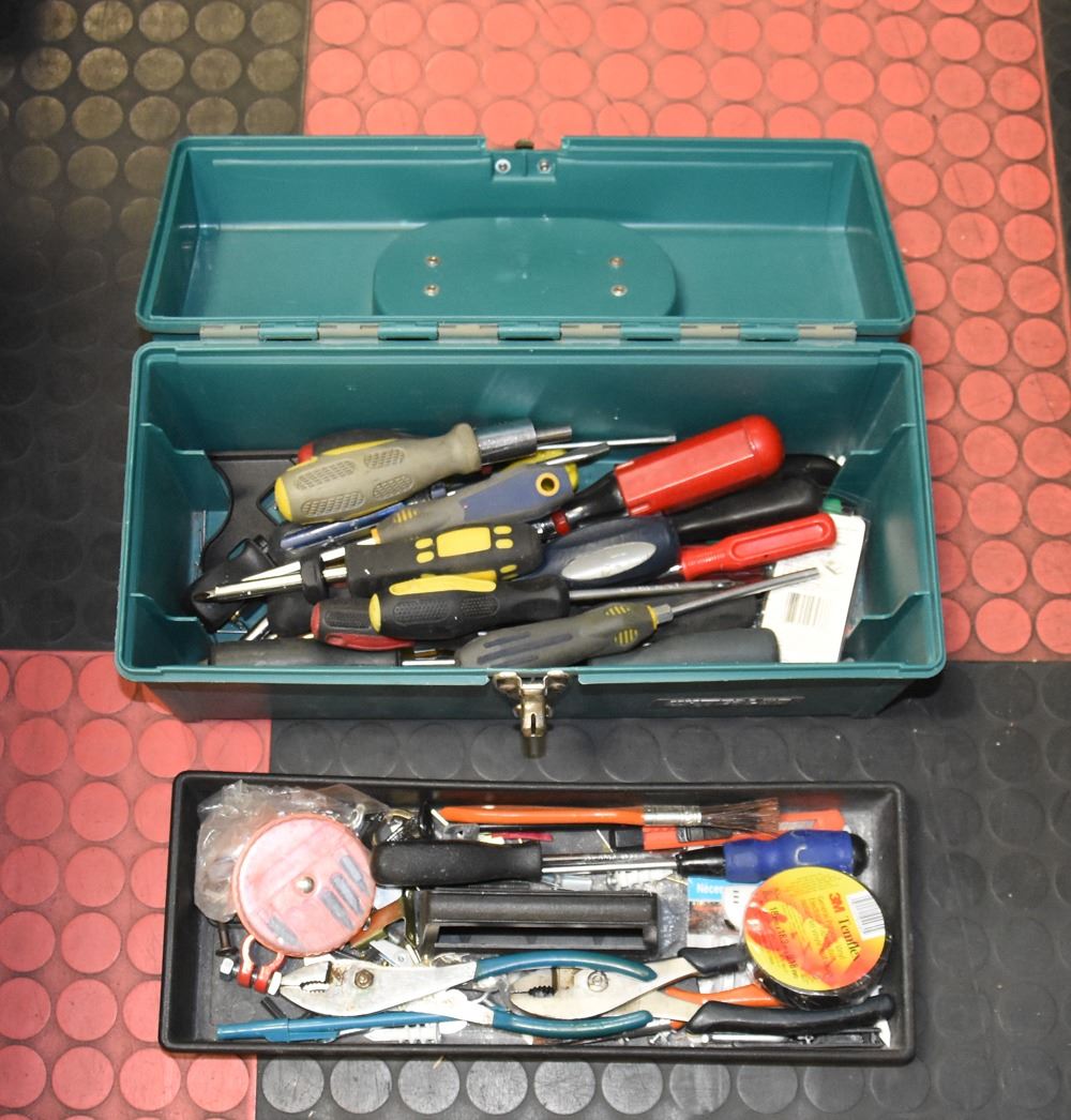 GREEN WATERLOO PLASTIC TOOLBOX W/ CONTENTS