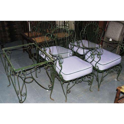 GREEN WIRE GARDEN GARDEN SET, four chairs and